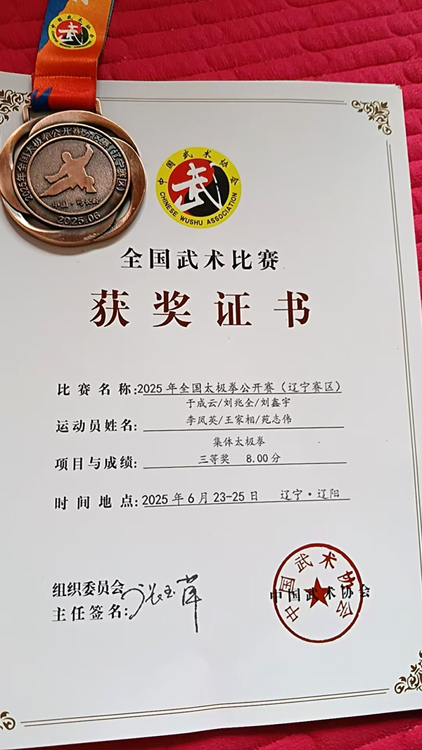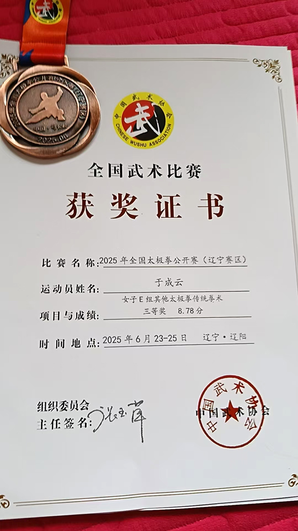 【参赛获奖】几十年来,参加国际国内各种武术比赛获金牌48枚、银牌26枚、铜牌18枚。【荣誉称号】2010年被评为“世界武林百杰”、“太极拳推广大使”,2016年获传统武术名家名师奖,2017年获庆祝内蒙古自治区解放七十周年2017草原武林那达幕“草原武林英杰”牌匾,2018获中国齐云山第二届“张三丰杯”武术邀请赛“当代武学名家”荣誉奖牌,2019年获第四届中国南太行武术节“名家展演金奖”,2020年获第八届武当国际演武大会“中华传统武术优秀传承人”。2021年第二届古武当山武术文化艺术节担任专家评委。