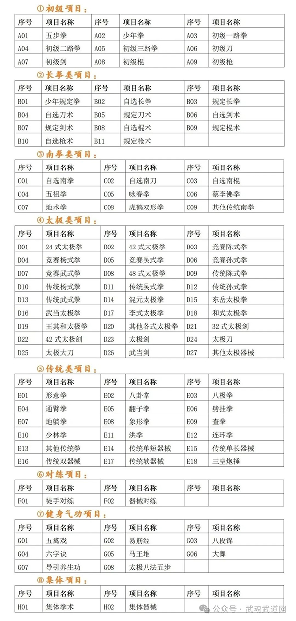 1、 传统拳术、器械不超过2分钟(太极类项目除外) 。