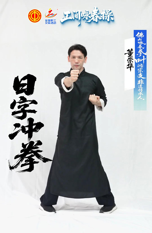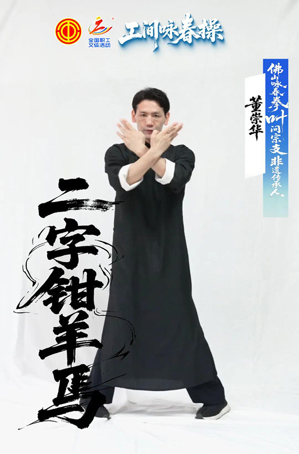 为增加练习趣味性,全总特邀佛山咏春拳(叶问宗支)非遗传承人董崇华,从传统咏春拳套路中精选八个简单易学的招式,编制成适合零基础成人练习的“工间咏春操”,并录制示范视频。这套健身操咏春拳特色鲜明,包含二字钳羊马、日字冲拳等经典招式,不受场地、器械限制,男女老少均可练习,在三分钟内即可完整练完,适合工间拉筋放松、舒展肩背。