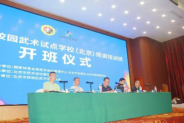 本次培训经北京市体育局和北京市教育委员会研究组织开展,北京市什刹海体育运动学校副校长、北京市武术运动管理中心副主任、北京市武术运动协会会长鲁雪峰、北京市西城区体育局三级调研员陈敬东等有关领导出席了培训班开班仪式。来自北京市71所校园武术试点单位的170余名学员参加了此次为期5天的专项培训。