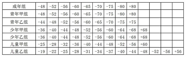 (六)散打比赛运动员报到后先称量体重,且称一次体重,然后抽签进行编排。
