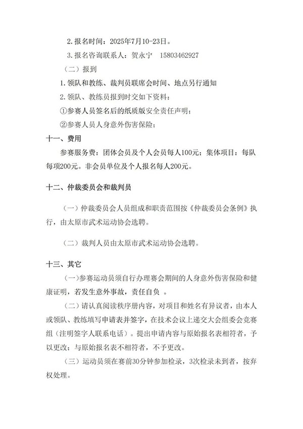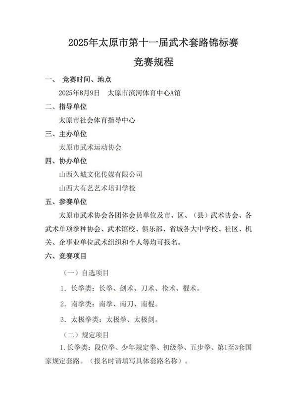 2025年太原市第十一届武术套路锦标赛将于8月9日在太原市滨河体育中心举行