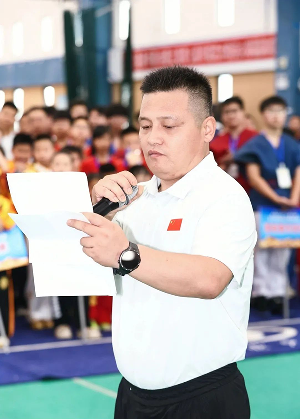 中国武术七段、国家级考评员、西安市雁塔区三秦武术协会常务副主席马波介绍出席开幕式的嘉宾。