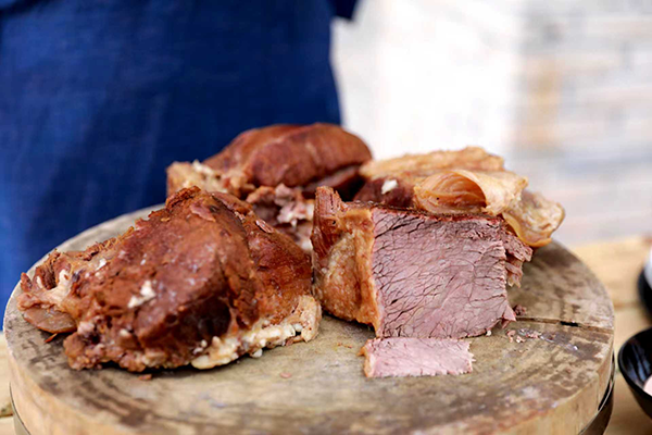 步入古风街,明星产品“平凉红牛”肉质细嫩、营养丰富,大理石花纹般的肉品吸引着顾客的目光;四十里铺鲜桃饱满多汁,小番茄如红宝石般晶莹剔透,散发着夏日鲜果的甜蜜诱惑;柳湖茶艺区茶香袅袅,身着传统服饰的茶艺师行云流水般向往来游客展示茶水冲泡技艺;崆峒麻鞋质朴中透着手工的温度;黄酒展台飘散着粮食发酵后的醇厚芬芳;百年老店“春华楼”的羊肉泡馍热气蒸腾,浓郁香气勾人食欲;上杨乡展区的中医现场把脉问诊,搭配养生药茶,传递着"药食同源"的康养智慧。