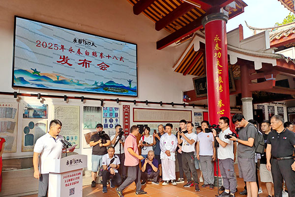 “‘永春白鹤拳十八式’这一创新套路是在有三百余年历史的永春白鹤拳基础上,融合现代健身理念创编的,希望让古老武学走进当代生活。”永春县永春拳协会监事潘伟涛介绍,此次发布对白鹤拳的传承与发展具有重要意义,有助于优秀非物质文化遗产在现代社会中焕发新的活力。