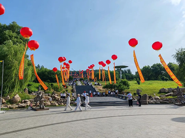 炎炎夏日,暑气蒸腾,在这个周末,风光秀丽的北国江城吉林市准备了数十场各具特色的活动,以周末狂欢的形式情聚本乡亲,礼迎天下客。其中此刻在玄天岭文化公园举办的一场武术展演,可谓声势浩大。这次活动名为“大东山水迎天下•吉林北武当”首届全民健身民族武术展演,活动由吉林市民族事务委员会、市体育局联合主办,吉林市满族企业家协会、市少数民族武术家协会共同承办,吉研高科技有限公司全程赞助。