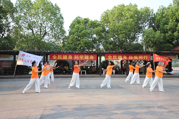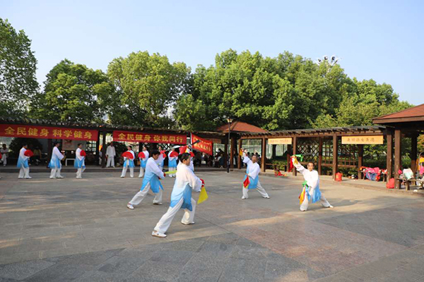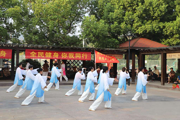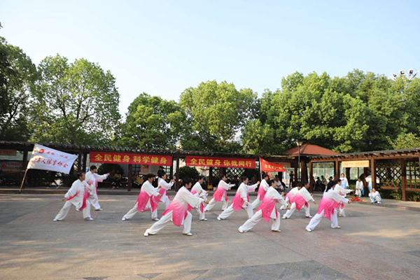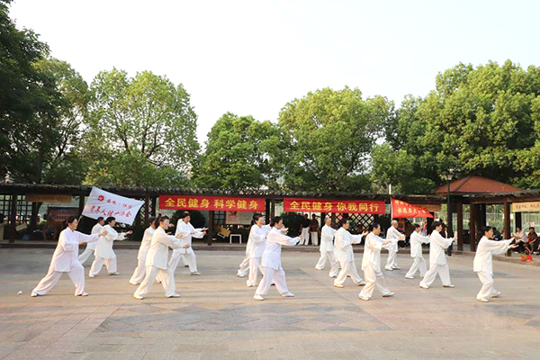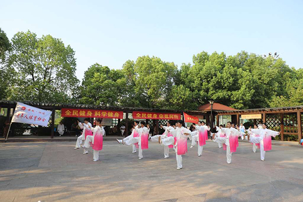 怀远县举行“全民健身 科学健身你我同行”武术展演进公园活动