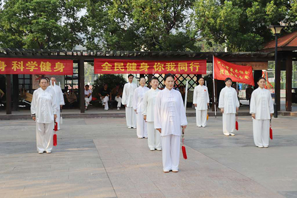 参演人员冒高温、战酷暑,挥汗如雨,但个个精神抖擞,一招一式张弛有度、行云流水,充分展示出表演者的刚柔之美、神韵之美、和谐之美。展演过程中,大家依次展示了下面节目: