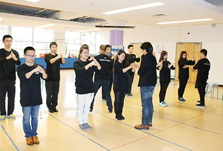 华裔青少年们随着郑祖杰的动作认真学习咏春拳