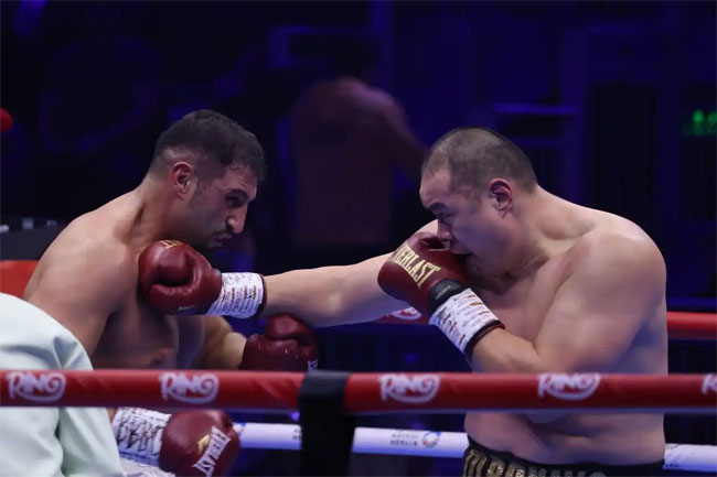 第六回合,张志磊体能明显下降,移动迟缓,在卡巴耶尔一轮持续有力的进攻下,裁判终止比赛,判定TKO。