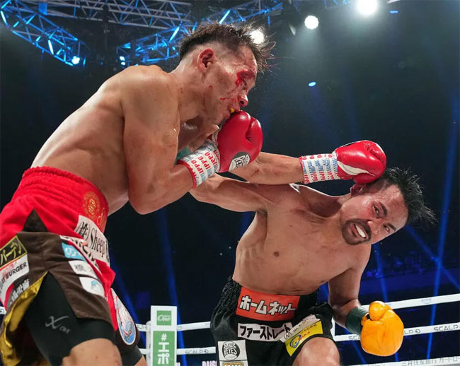 比赛开局,堤圣也凭借高频次刺拳控制节奏,比嘉大吾则蛰伏于角落,以重拳突袭回应。第四回合的一次头部撞击让卫冕拳王堤圣也左眼撕裂,血流不止。医疗检查后,堤圣也带着血迹重返战场,比嘉的猛攻如潮水般涌向伤口,试图提前终结比赛。