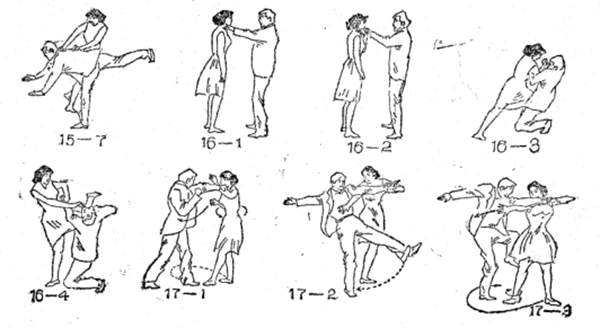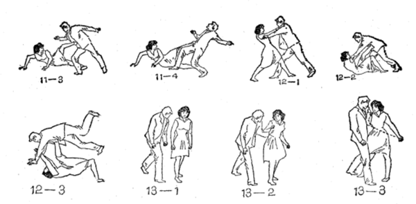 要点:后倒要主动,要快要猛,拉手要稳,蹬腿要狠。一旦将他蹬出,立即翻身起来,迅速脱离现场或大声呼救。